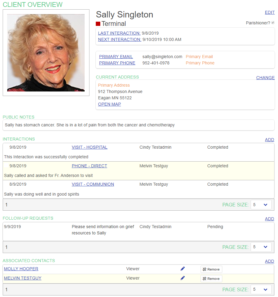 But if the client has an additional phone number or email address, you may prefer to use ADD to create a new phone or email address. In this way, if a client moves between a nursing home for rehabilitation and their home, for example, both phone numbers will be available, and you can easily switch the primary phone number when they return home. This also allows you to capture both a home number and a mobile number, if desired.