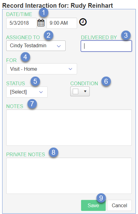 - Add any desired NOTES about the interaction. (All users with access to this client can view these notes.)