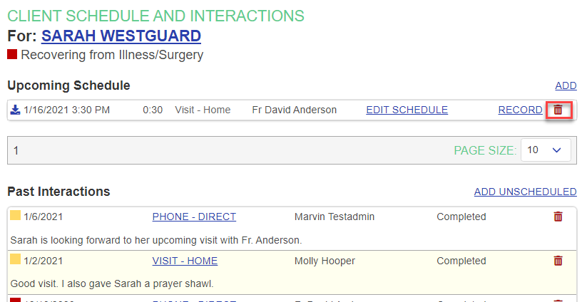 Click on the link for their name. The Contact View page for the selected client is displayed. Click on the ADD link for Interactions. The Client Schedule page is displayed: