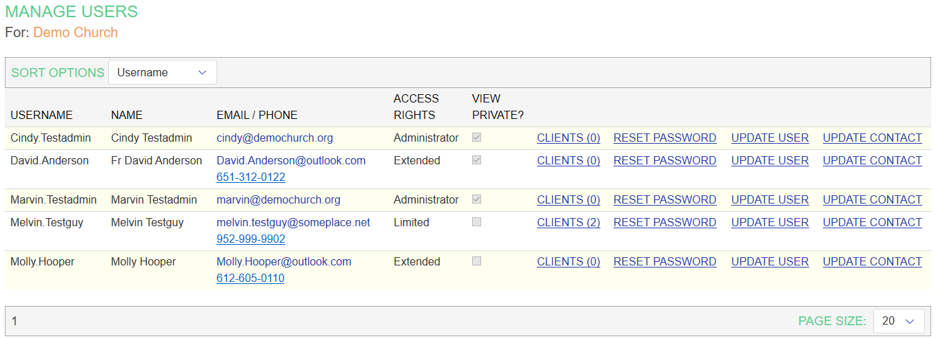 An important part of Curanotis setup is establishing user accounts for the other individuals who will be accessing the system. This might be church staff members, clergy, or volunteers who perform pastoral care visits. Anyone who might interact with clients or schedule interactions should have a user account.