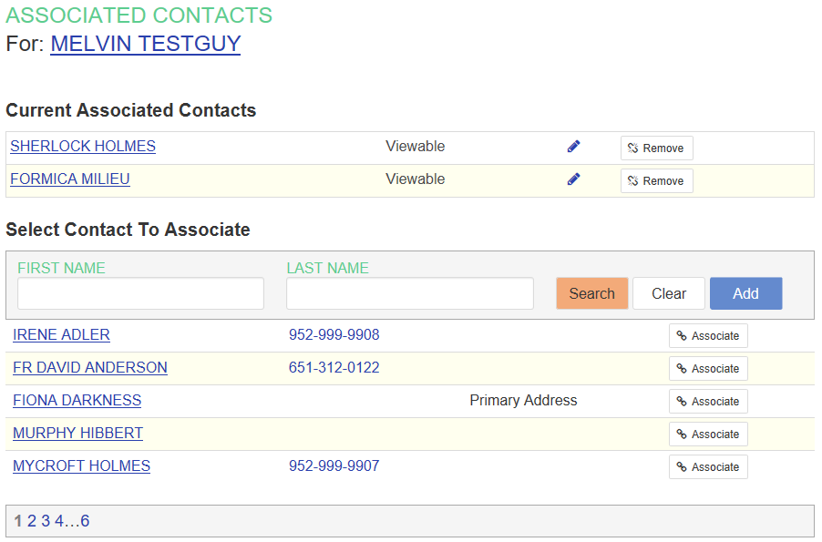 - Click on the EDIT ASSOCIATIONS link to go to the Associated Contacts page.
