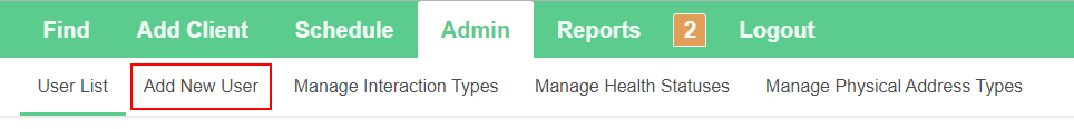 To add a new user for your organization, click the Admin menu, then select the Add New User submenu.