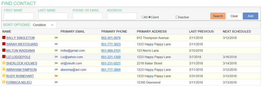 To edit a client's phone number or email address, first find the desired client using the Find page: