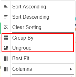Select Group By to group your data by the selected column. Here is an example of how the results will look when grouped: